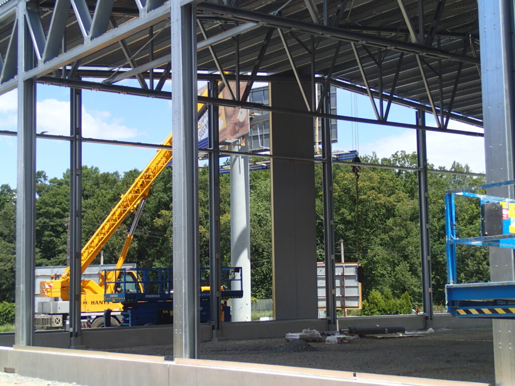 Pro stěny badmintonové haly byly zvoleny panely Kingspan, které při tloušťce 20 cm mají skoro neuvěřitelné izolační schopnosti – součinitel prostupu tepla U = 0,11 W/m2/K. Na střechu pak bude položena vrstva minerální vlny (8 cm) a vrstva polystyrenu EPS 100 (30 cm) s výsledným U = 0,12 W/m2/K.